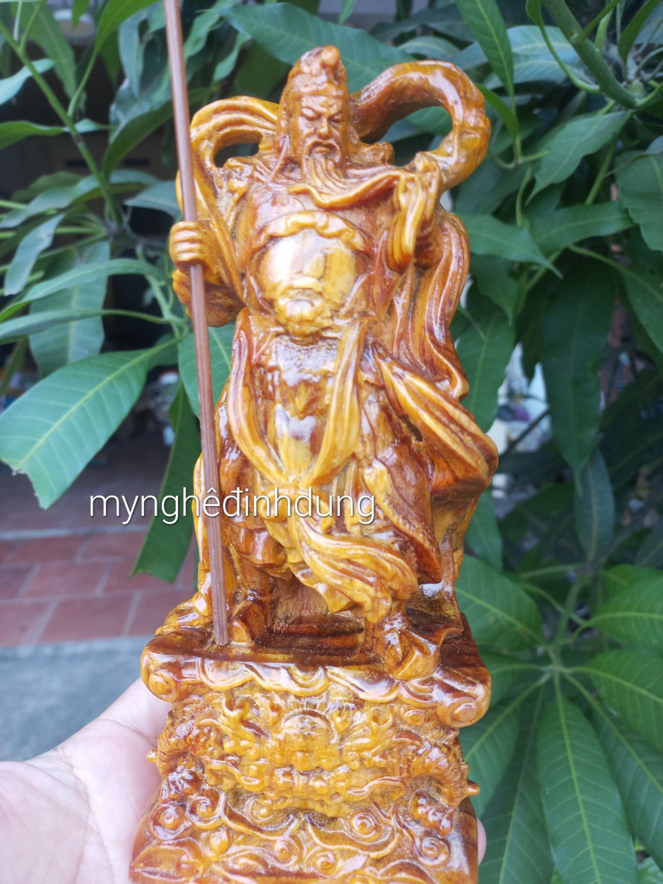 Tượng Quan Công Đứng Múa Gỗ Mỹ Nghệ Size Vừa Cao 40cm đk 24cm Sâu 17cm tư thế sẵn sàng chiến thắng Anh Chị trưng trên bàn phòng khách nhà , công ty ạ