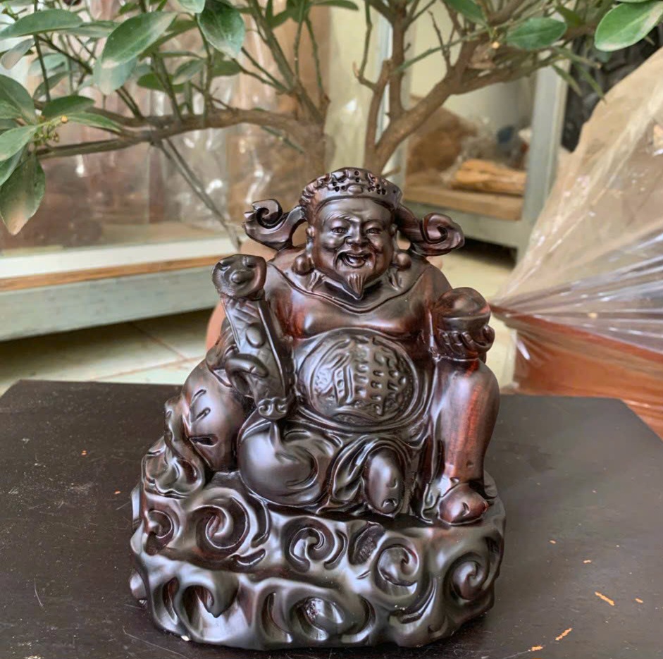 ✨Tượng thần tài bằng gỗ trắc đỏ đen kt 15×13×8cm
