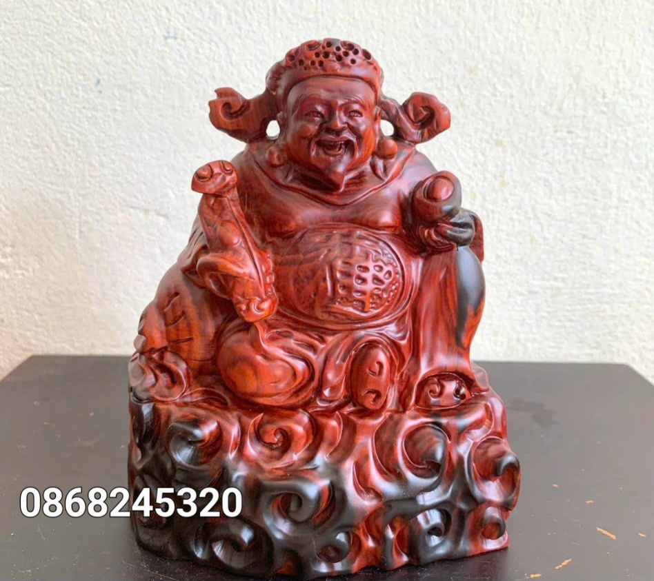 Mua tại Tiktok_ Tượng thần tài được làm bằng chất liệu gỗ trắc đỏ đen liền khối tự nhiên 100%
