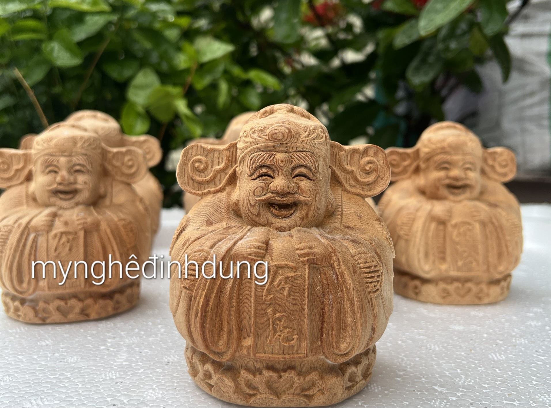 Mua tại TiktokTượng thần tài mini được làm bằng chất liệu gỗ ngọc am liền khối tự nhiên 100% Kt cao 10×8×8cm _ Tượng được chạm khắc gọt tỉa vô cùng tỉ mỉ tinh xảo kỳ công. Đi hầu hết tất mọi chi tiết góc ngách nội dung hoa văn của tượng đều được gọt tỉa chỉnh sửa sắc nét hoàn toàn bằng tay thủ công.