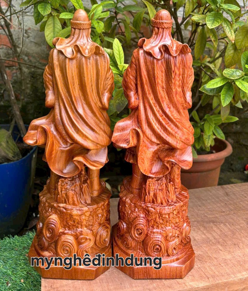 _ Tượng được chạm khắc vô cùng tỉ mỉ tinh xảo kỳ công. ĐI HẦU hết tất cả mọi chi tiết góc ngách nội dung hoa văn của tượng đều được gọt tỉa chỉnh sửa sắc nét hoàn toàn bằng tay thủ công truyền thống.