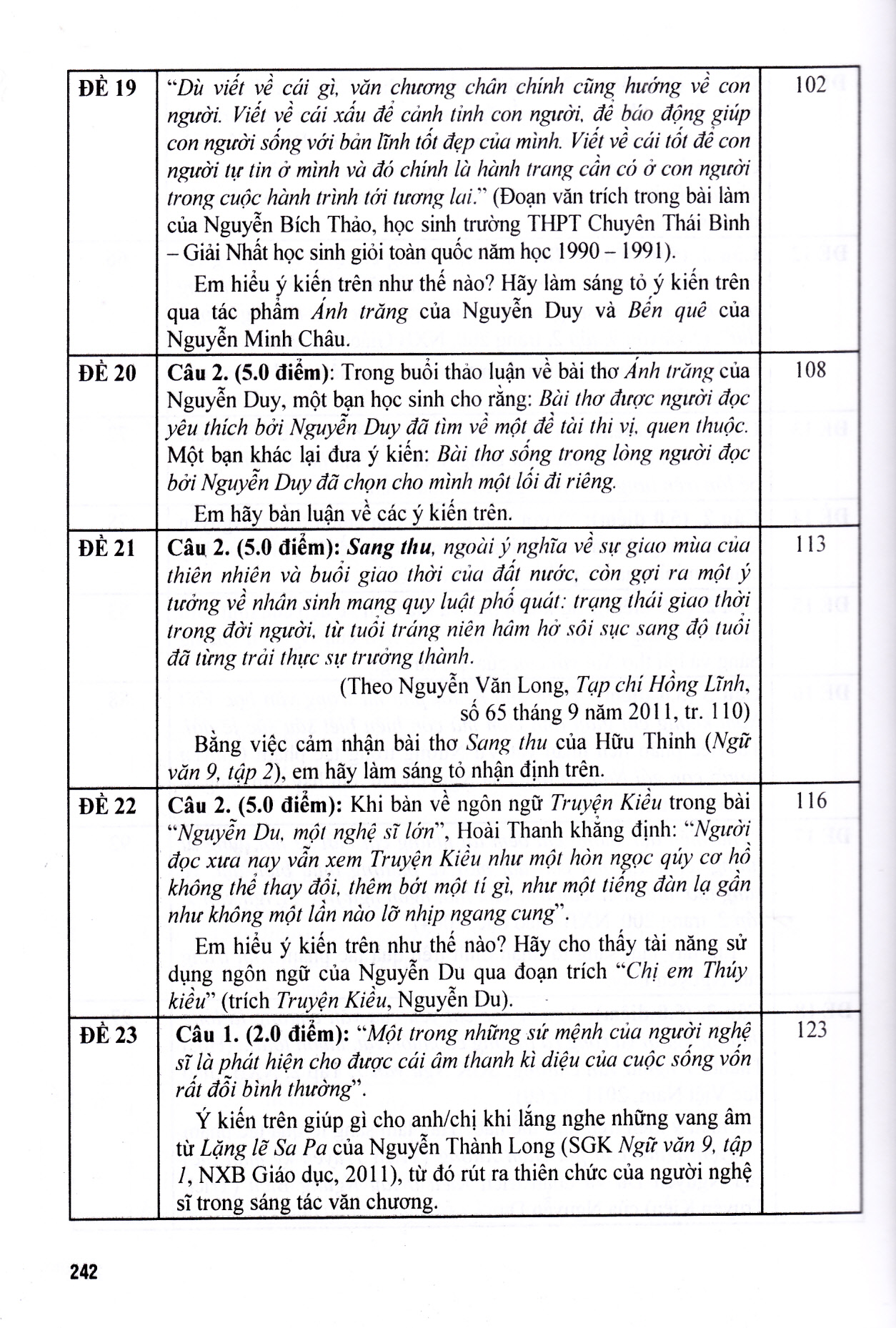 Bố cục sách gồm 45 đề thi và hướng dẫn chấm - theo cấu trúc mới của Bộ giáo dục và đào tạo. Các ngữ liệu của đề thi được lấy trong hoặc ngoài chương trình sách giáo khoa giúp thầy cô và các em được tiếp cận nhiều với những vấn đề thực tiễn.
