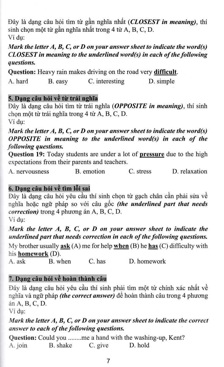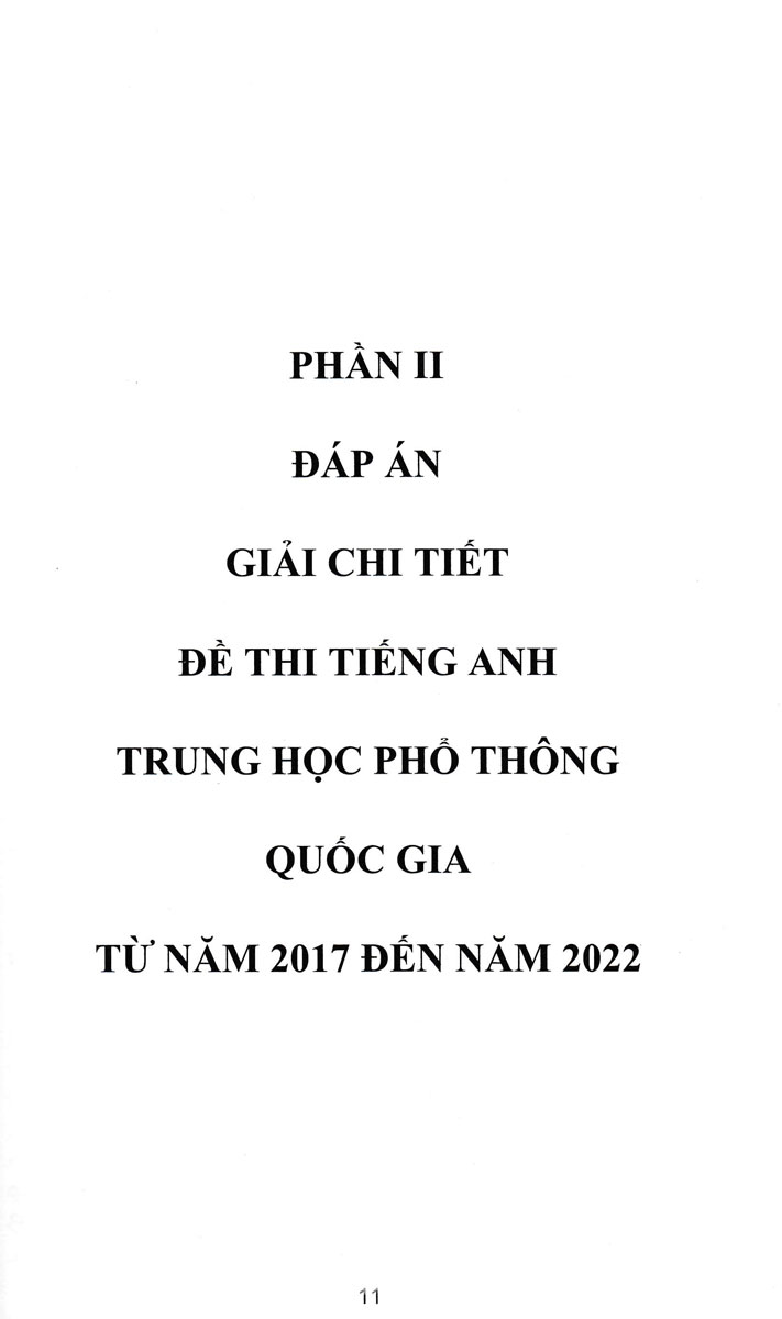 Bên cạnh đó, sách còn tổng hợp đề thi từ 2017 - 2022 có đáp án và lời giải chi tiết. Đây chính là cơ hội để sĩ tử làm bài thi thử đúng cấu trúc đề ra. Luyện đề nhiều còn tăng tốc độ làm bài, cải thiện điểm thi Tiếng Anh THPT Quốc Gia rõ rệt.