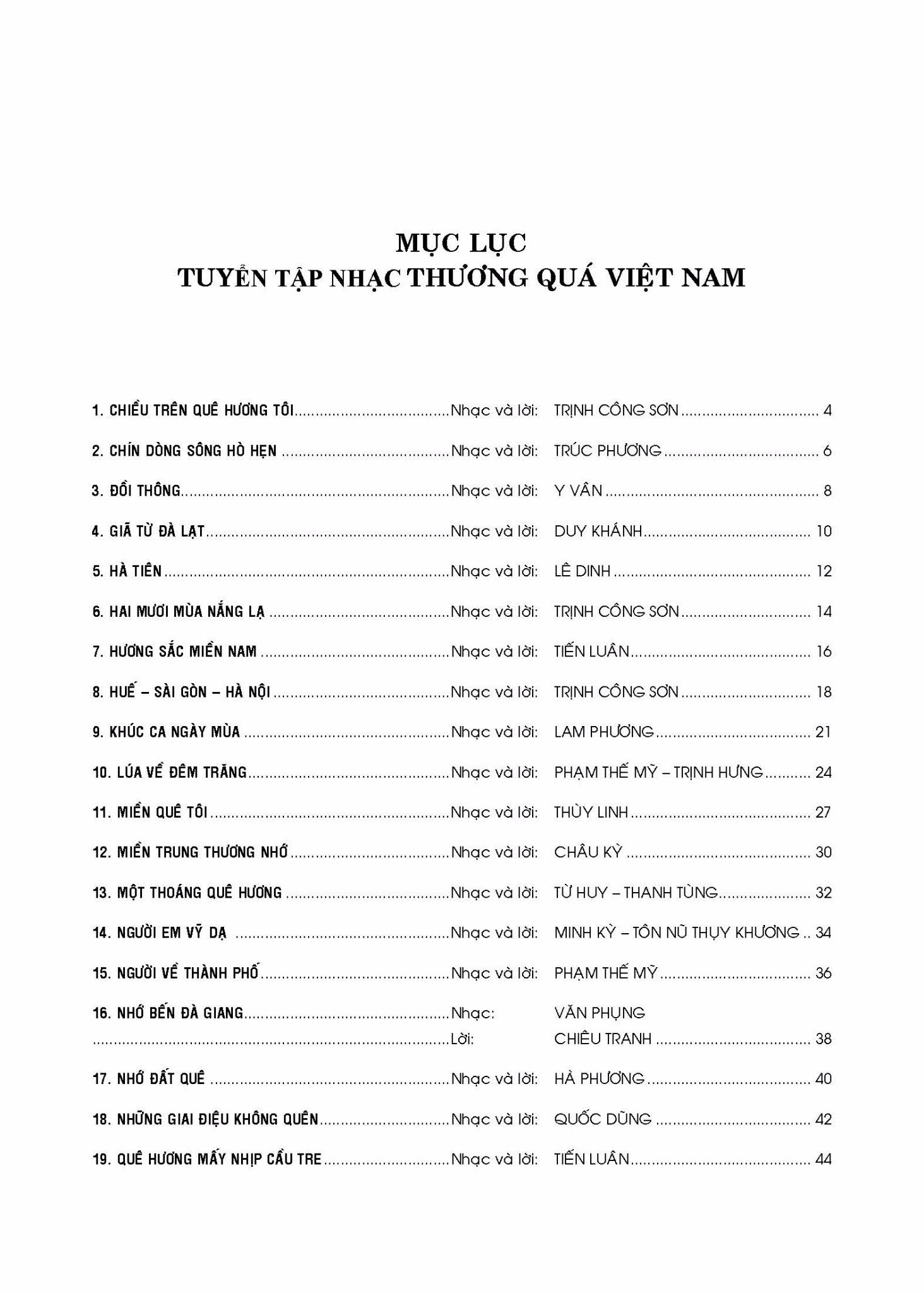 Mua tại TiktokCuốn sách là tuyển tập những tình ca về quê hương, những bài hát rất đỗi gần gũi và quen thuộc với mỗi người Việt Nam chúng ta, qua đó thể hiện được tình yêu quê hương, đất nước, yêu người lao động, yêu những cánh đồng quê bạt ngàn.