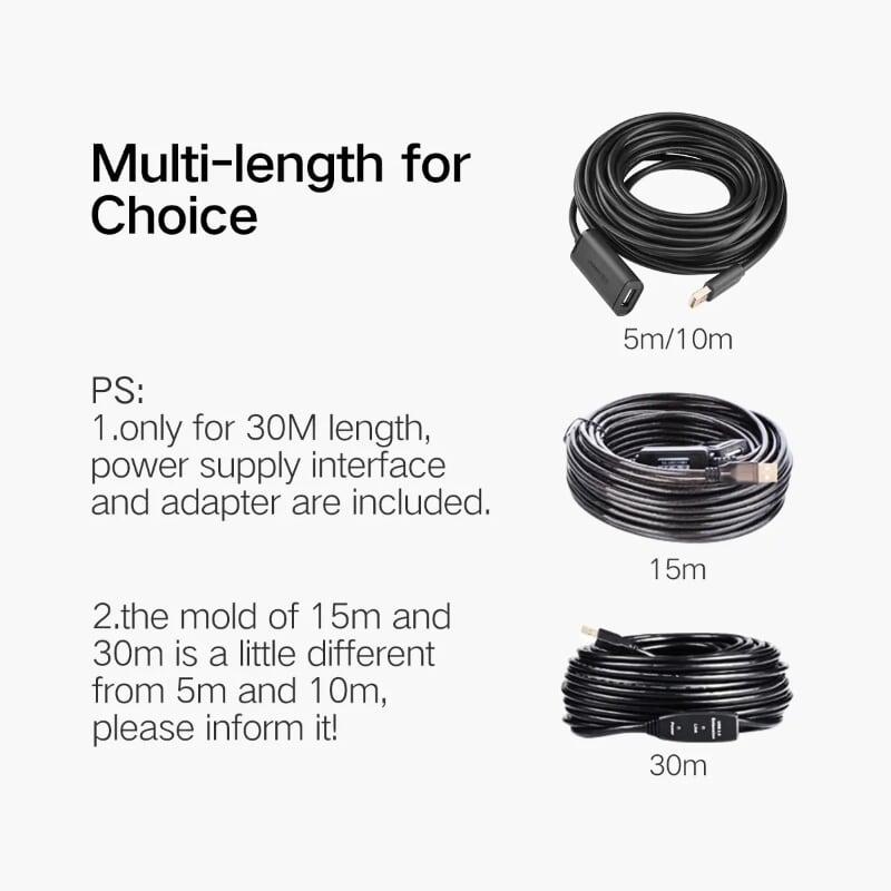 Ugreen 10326 30m usb 2.0 active extension cable with chipset đen us121 1. Length : 30M 2. Color : Black 3. USB Version : 2.0 4. Data Transfer Link Cable USB 2.0 5. 1500 g
