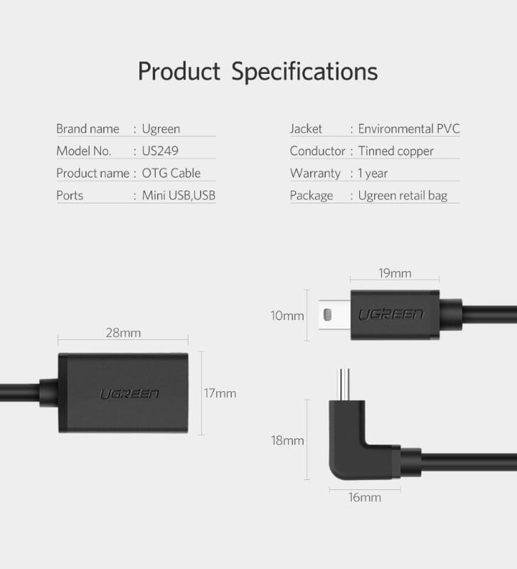 Mua tại TiktokUgreen 10383 mini usb 2.0 otg cable đen us249