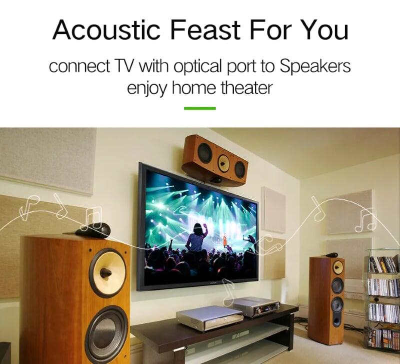 - Features: fiber optic audio connection cable