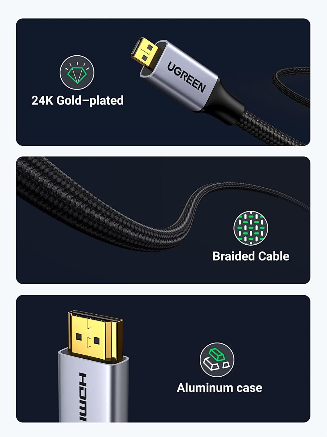 ✨Ugreen UG10550HD109TK 1M 4k 60hz Cáp chuyển Micro HDMI sang HDMI đầu kim loại dài 1M - HÀNG CHÍNH HÃNG