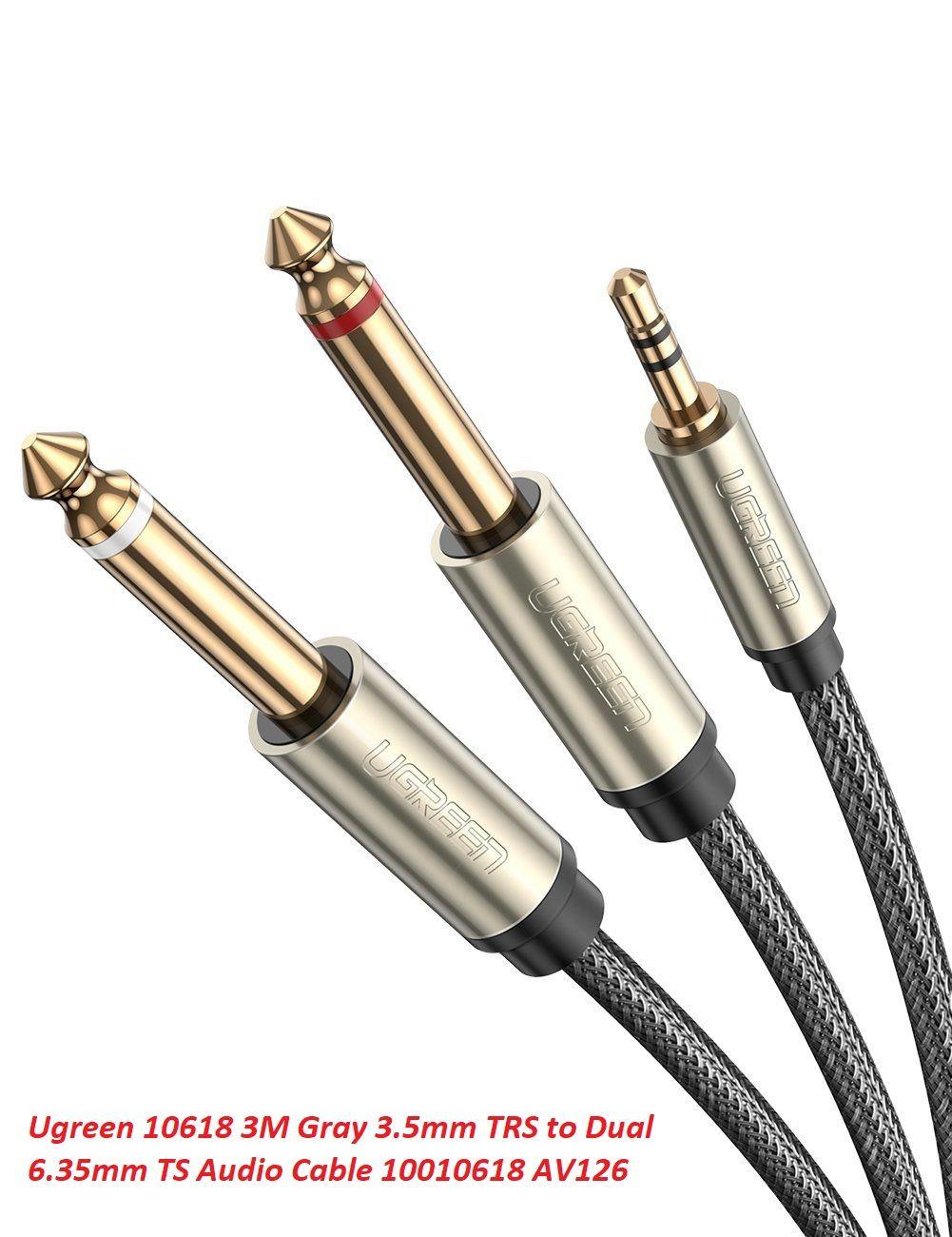 ✨Ugreen UG10618AV126TK 3M màu xám cáp 3.5mm TRS ra 2 cổng 6.35mm TS - HÀNG CHÍNH HÃNG