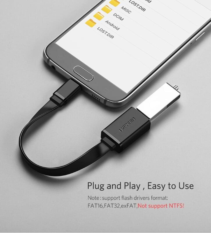 Mua tại TiktokUgreen 10821 10cm micro usb otg cable đen us133