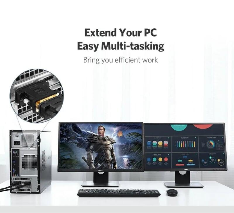 1. Bạn có thể dễ dàng kết nối đầu ra DVI từ máy tính của bạn để đầu vào VGA trên màn hình của bạn với cáp này. Sẽ đơn giản hơn là sử dụng