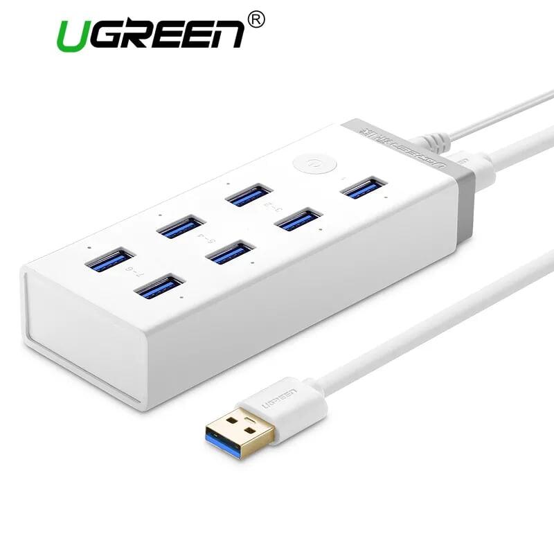 ✨Ugreen UG20296CR116TK Màu Trắng Bộ chia HUB USB 3.0 sang 7 USB 3.0 hỗ trợ nguồn 12V - HÀNG CHÍNH HÃNG