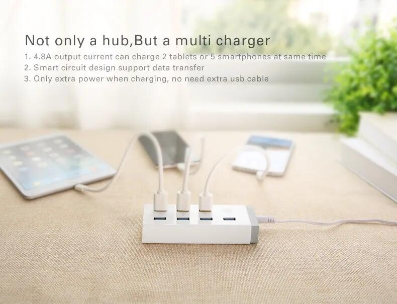 Ugreen 20296 7 ports usb 3.0 charging hub màu trắng cr116 1. with 12V 2A power adapter With BC1.2 2. Color : White 3. 500g 4. 20 x 15 x 5 cm