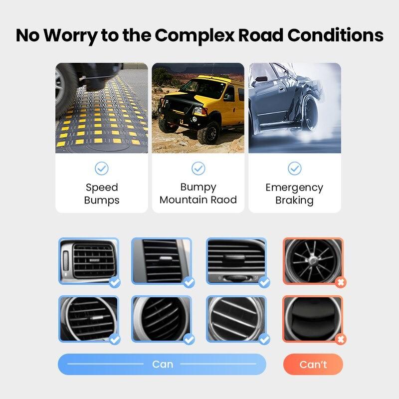1. Suitable for 4.7-7.2 inches screen phones 2. Rotatable pivot structure allows multi-angle adjustable 3. Auto-Clamp Linkage: lock your phone tightly with five gravity arms 4. Arc-Shaped mounting clip: Firm Grip Onto Air Vent 5.