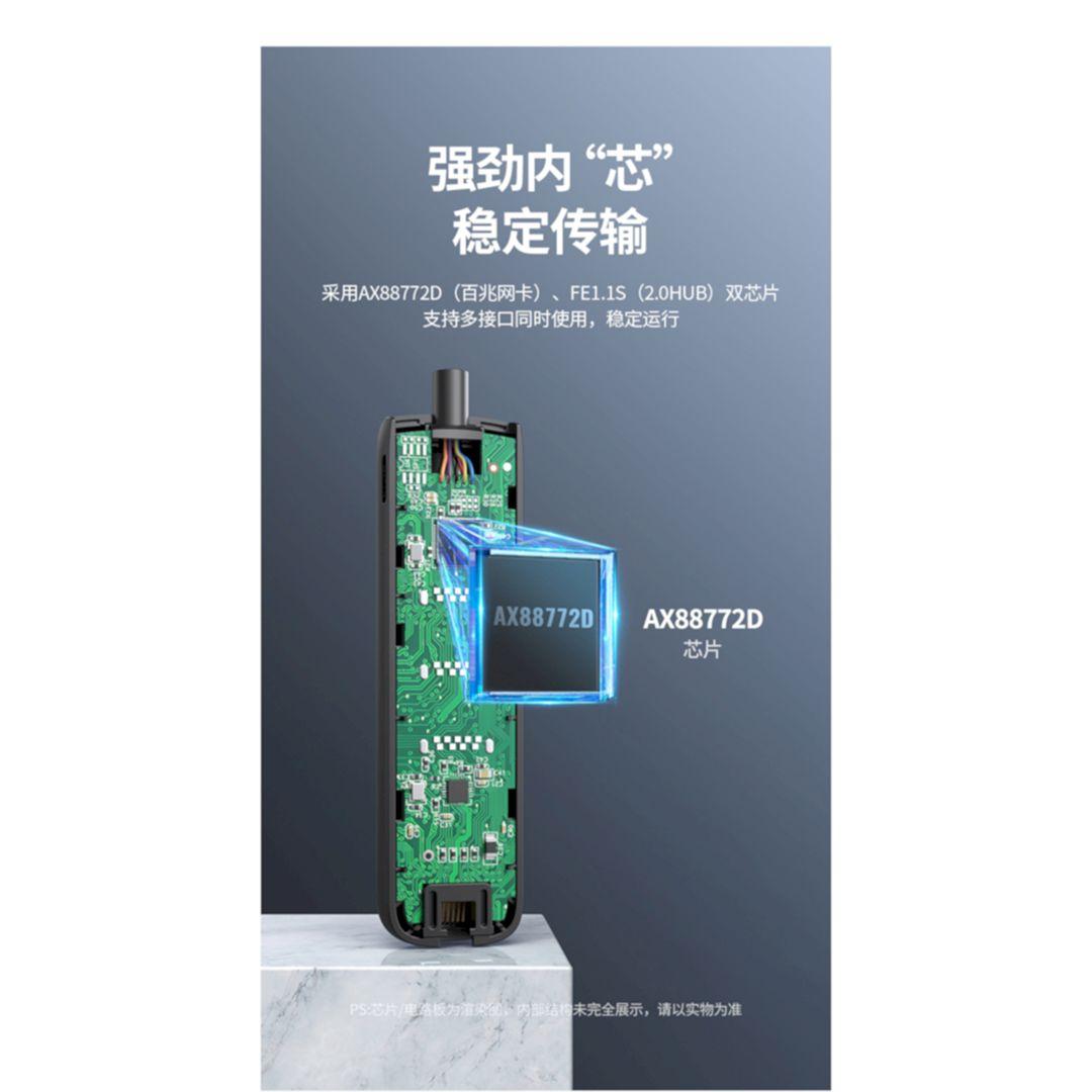 1. Input: USB 3.0 A 2. Output: 3 x USB 3.0, 1 x RJ45, 1 x Micro USB 3. Transfer Rate: 10/100/1000Mbps 4. Material: ABS Shell 5. Cable Length: 20cm 6. 16 x 10 x