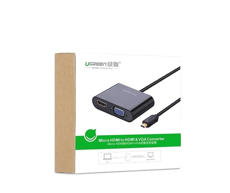Ugreen 30355 Micro Hdmi To Hdmi + Vga Adapter With 3.5Mm Audio Port Đen 10Cm Mm115 1. Features: Use to connect phones, tablets, laptops, Android TV boxes with micro HDMI port with projection devices such