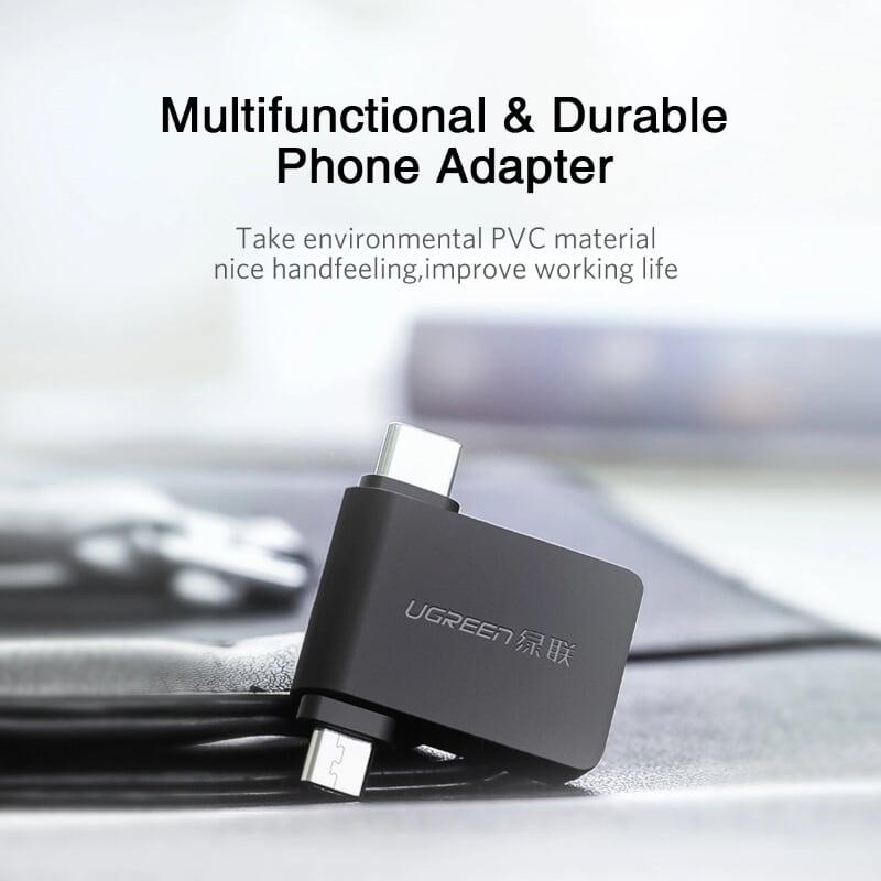 Mua tại TiktokUgreen 30453 micro usb + usb c to usb 3.0 adapter đen 30453