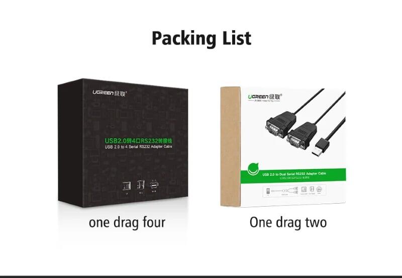 Mua tại TiktokUgreen 30769 usb 2.0 to dual 2 port serial rs232 adapter cable đen us229