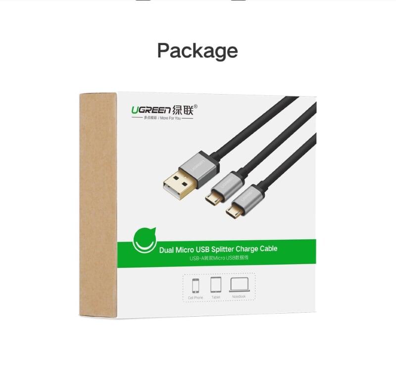 ✨Ugreen UG40347US196TK 0.5M màu Đen Cáp sạc truyền dữ liệu USB 2.0 sang 2 đầu MICRO USB cao cấp - HÀNG CHÍNH HÃNG