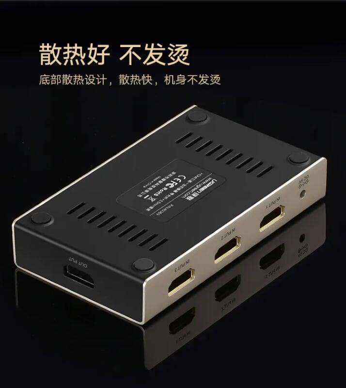 - Bộ Swich Cổng HDMI Ugreen Vào 3 Cổng HDMI Ra 1 Cổng HDMI Remote 40278 với thiết kế nhỏ gọn, vỏ hợp kim cao cấp. Bề mặt tráng nhựa mỏng chống sầy xước, đầu