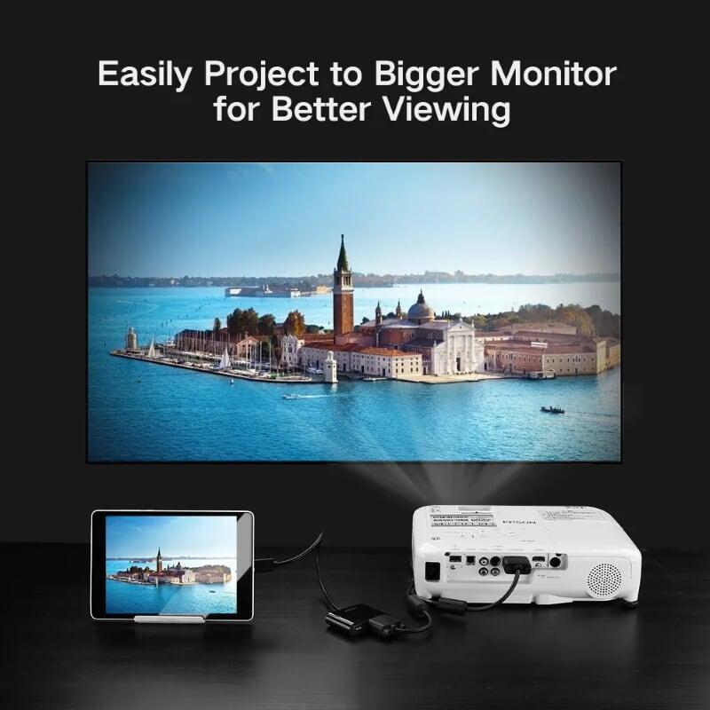 - Features: connect HDMI port device to monitor, projector with VGA port.