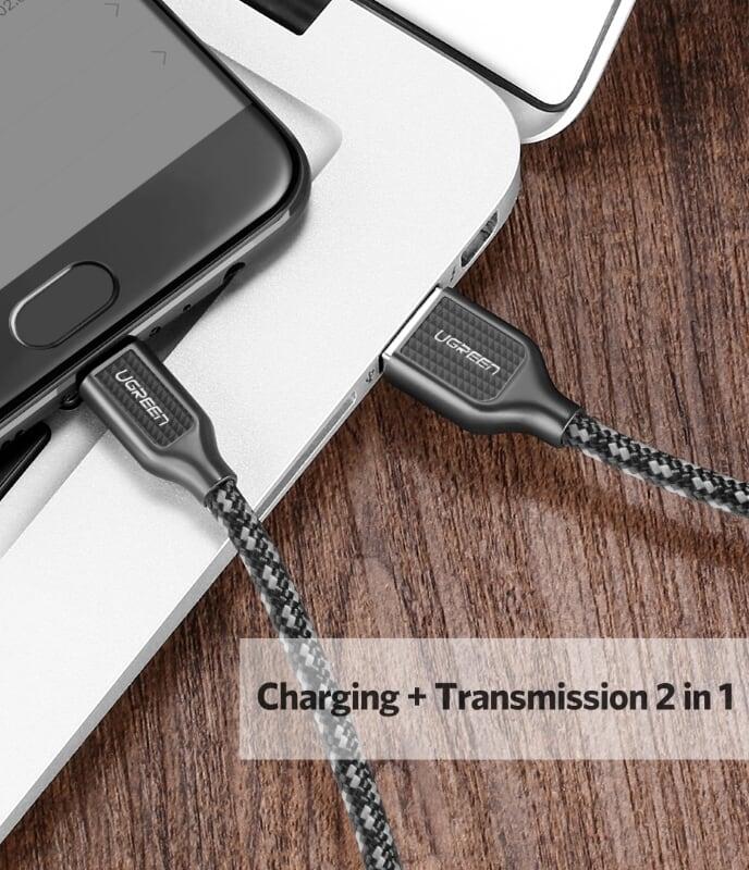 1. Charging Speed: 5V/3A 2. Data Transfer Speed: 480Mbps 3. Cable Material: Nylon 4. UGREEN USB-C Cable supports QC 4.0 / 3.0 / 2.0 / 1.0 and Huawei FCP, can charge your devices with up