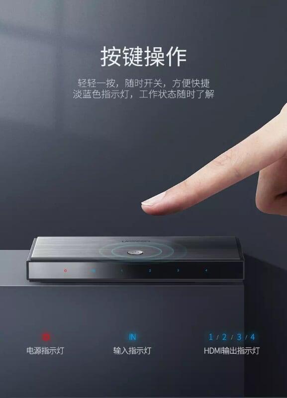 - Bộ Swich Cổng HDMI Ugreen Vào 3 Cổng HDMI Ra 1 Cổng HDMI Remote 40278 với thiết kế nhỏ gọn, vỏ hợp kim cao cấp. Bề mặt tráng nhựa mỏng chống sầy xước, đầu