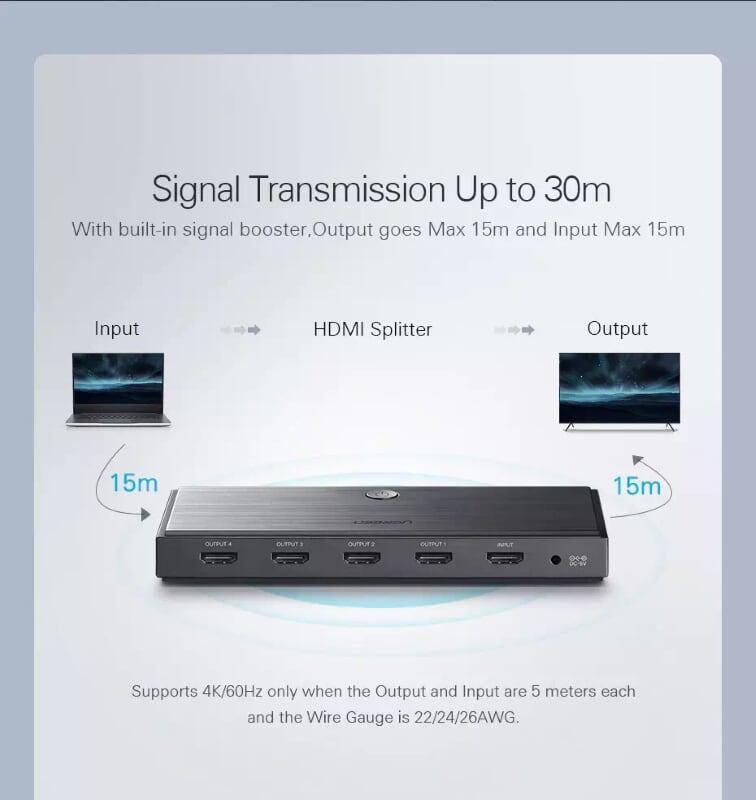 Mua tại TiktokUgreen 50708 1X4 Hdmi 2.0 Splitter Support 4K*2K@60Hz 1080P Cm187