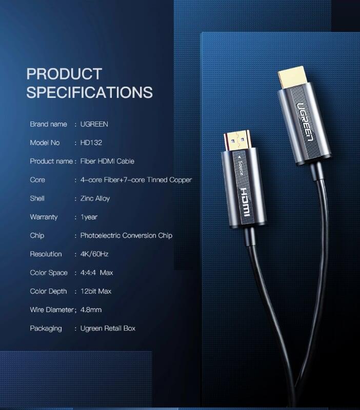Mua tại TiktokUgreen 50717 10M Hdmi 2.0 Zinc Alloy Optical Fiber Cable Hd132