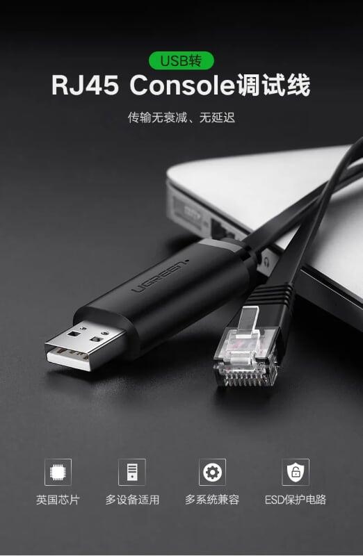 Ugreen 50773 1.5m usb to rj45 console cable black cm204 1. USB to RJ45 Console Cable can connects your computer or laptop's USB port to your modern router firewall switch or other device with a