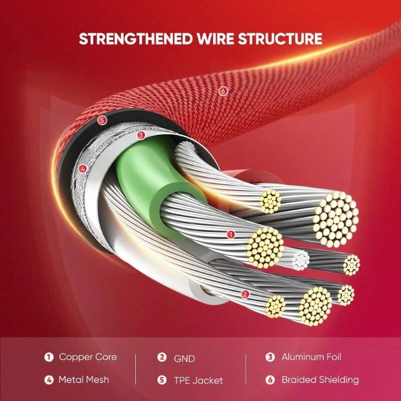 ✨Ugreen UG60555US299TK 1m cáp usb lightning bọc nhôm chống nhiễu góc 90 độ màu đỏ - HÀNG CHÍNH HÃNG