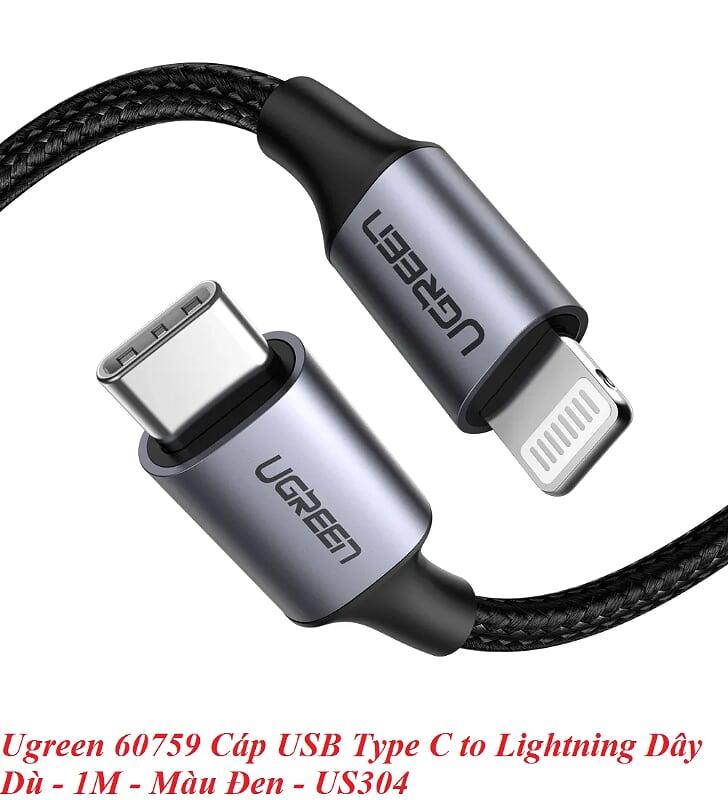 ✨Ugreen UG60759US304TK 1M Màu Đen Cáp USB Type C ra Lightning Dây bện nylon - HÀNG CHÍNH HÃNG