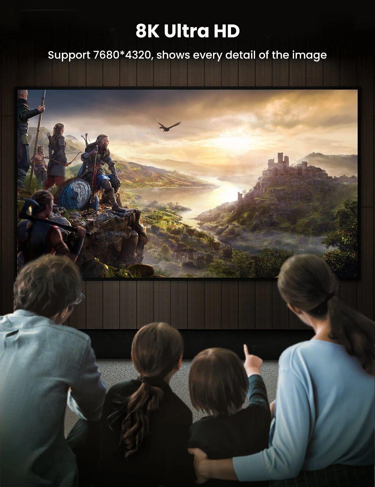 1. 8K resolution support at 60Hz and 4K resolution support at 120Hz for high-definition video and audio. 2. HDR (High Dynamic Range) support for improved color depth, contrast, and brightness. 3. Plug-and-play design, no additional