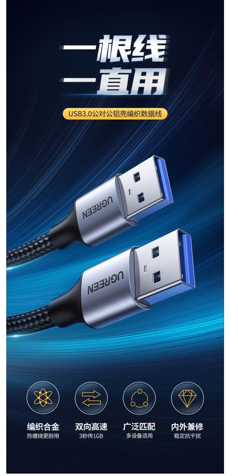 1. Length 0.5m 2. Input: USB 3.0 A Male 3. Output: USB 3.0 A Male 4. Speed up to 5Gbps 5. Support 2A Current 6. Multiple Interior Shielding 7. Aluminum case + Nylon braided 8.