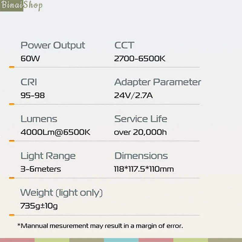 Cung cấp dải nhiệt màu rộng từ 2700 đến 6500K với CRI 95+ và kiểm soạt độ sáng từ 0-100% mang lại nhiều sự lựa chọn khách nhau cho người dùng.