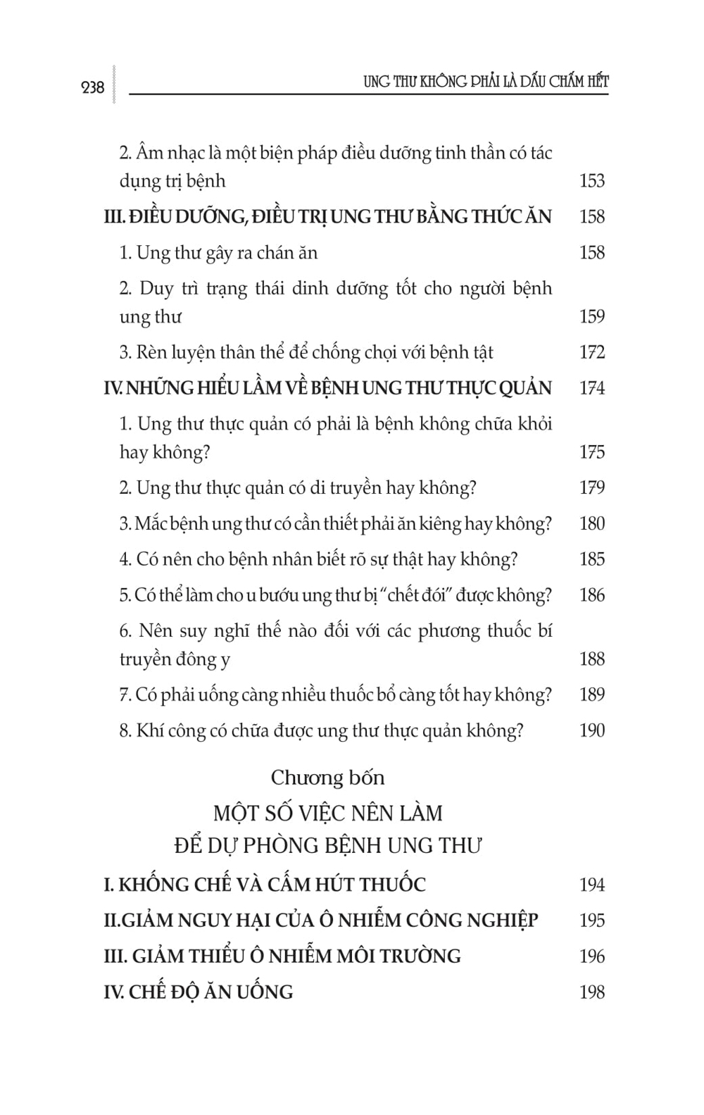 Bộ sách Ung thư không phải là dấu chấm hết gồm 5 quyển. Mỗi quyển là một sự tìm hiểu mỗi chứng bệnh ung thư khác nhau: Gan, Phổi, Thực quản, Đại tràng, tuyến vú;