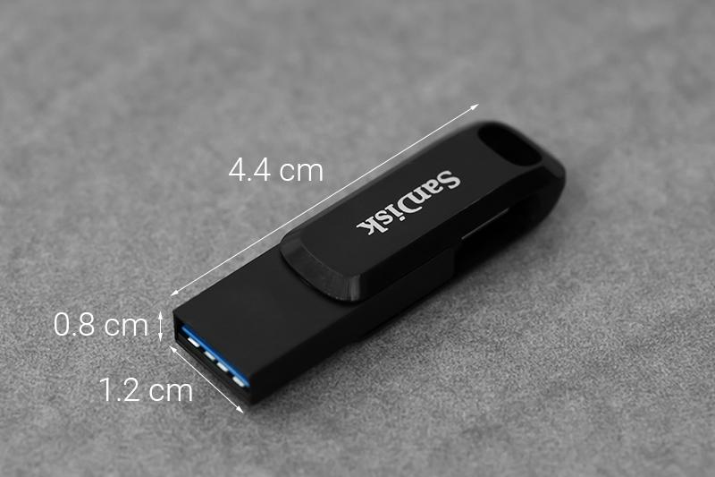 Kiểu dáng tinh xảo, nhỏ nhắn, nắp xoay bảo vệ các đầu kết nối tốt hơn Thiết kế Sandisk SDDDC3 gọn đẹp, màu đen thời trang, dễ dàng cầm nắm, tiện nhét vào túi quần