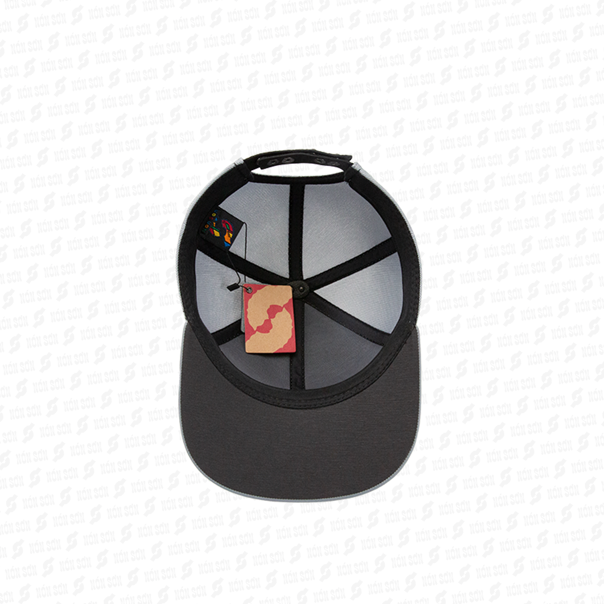 - Sử dụng kẹp phơi vào đai bên trong nón (vị trí giữa lưỡi trai), sao cho lưỡi nón hướng phía trên và dây đuôi hướng phía dưới.