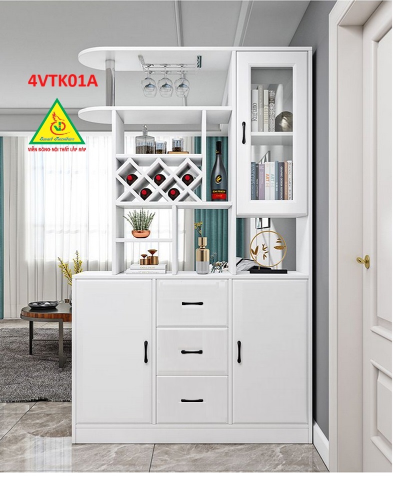 Vách ngăn kiêm tủ rượu trang trí thường có kết cấu và mẫu mã đa dạng. Một số mẫu vách ngăn được thiết kế với các kệ rượu và ngăn để trưng bày chai rượu vang của bạn một cách tinh tế và thuận tiện. Bạn có thể trưng bày các chai rượu với thiết kế đẹp mắt, tạo nên một góc trưng bày thu hút sự chú ý và tạo điểm nhấn cho không gian.
