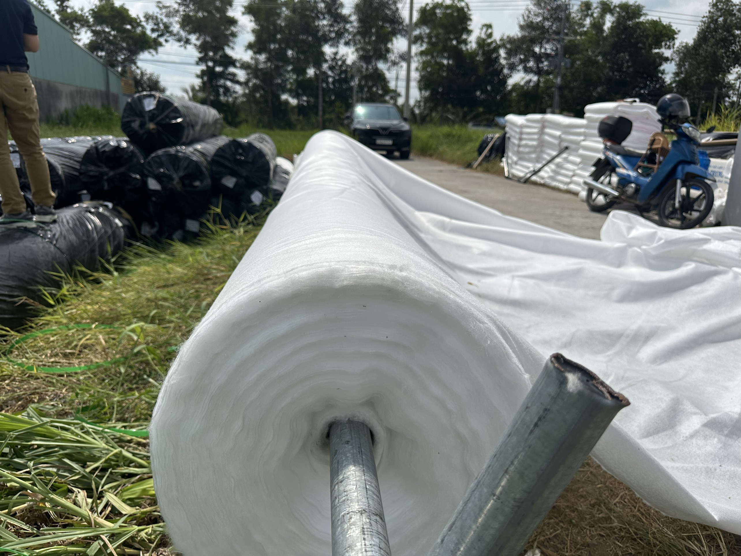 Vải địa kỹ thuật không dệt Khổ 100m2 , chiều Ngang 4m chiều dài 25m , khổ 4mx25m Vải địa kỹ thuật không dệt Vải địa kỹ thuật không dệt của SPI Sài Gòn được