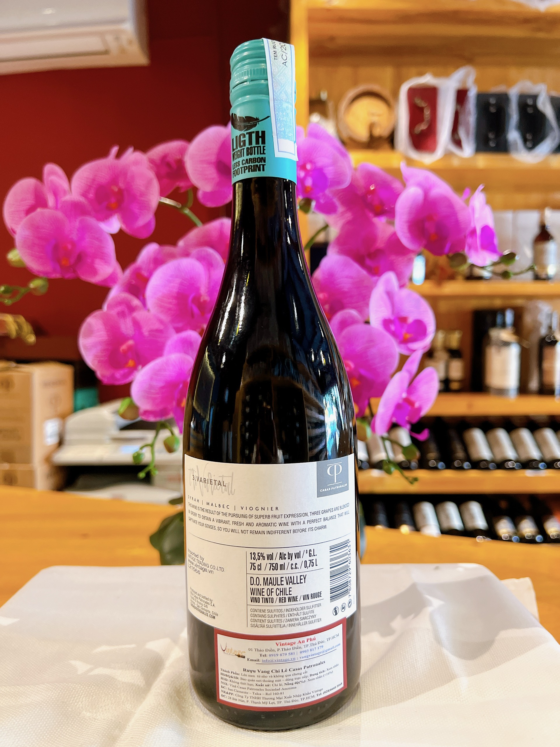 Mua tại TiktokLà sự kết hợp tuyệt vời của 3 loại nho nổi tiếng : 50% Syrah, 35% Malbec và 15% Viognier . Từ những quả nho tốt nhất được lựa chọn cẩn thận đã tạo ra một chai vang đỏ ấn tượng, với màu đỏ ruby quyến rũ, cùng hương vị của những loại trái cây đen, phản phất mùi quả mơ cùng mùi bánh mì nướng. Tất cả tạo nên một chai vang đậm đà với hậu vị cân bằng hoàn hảo