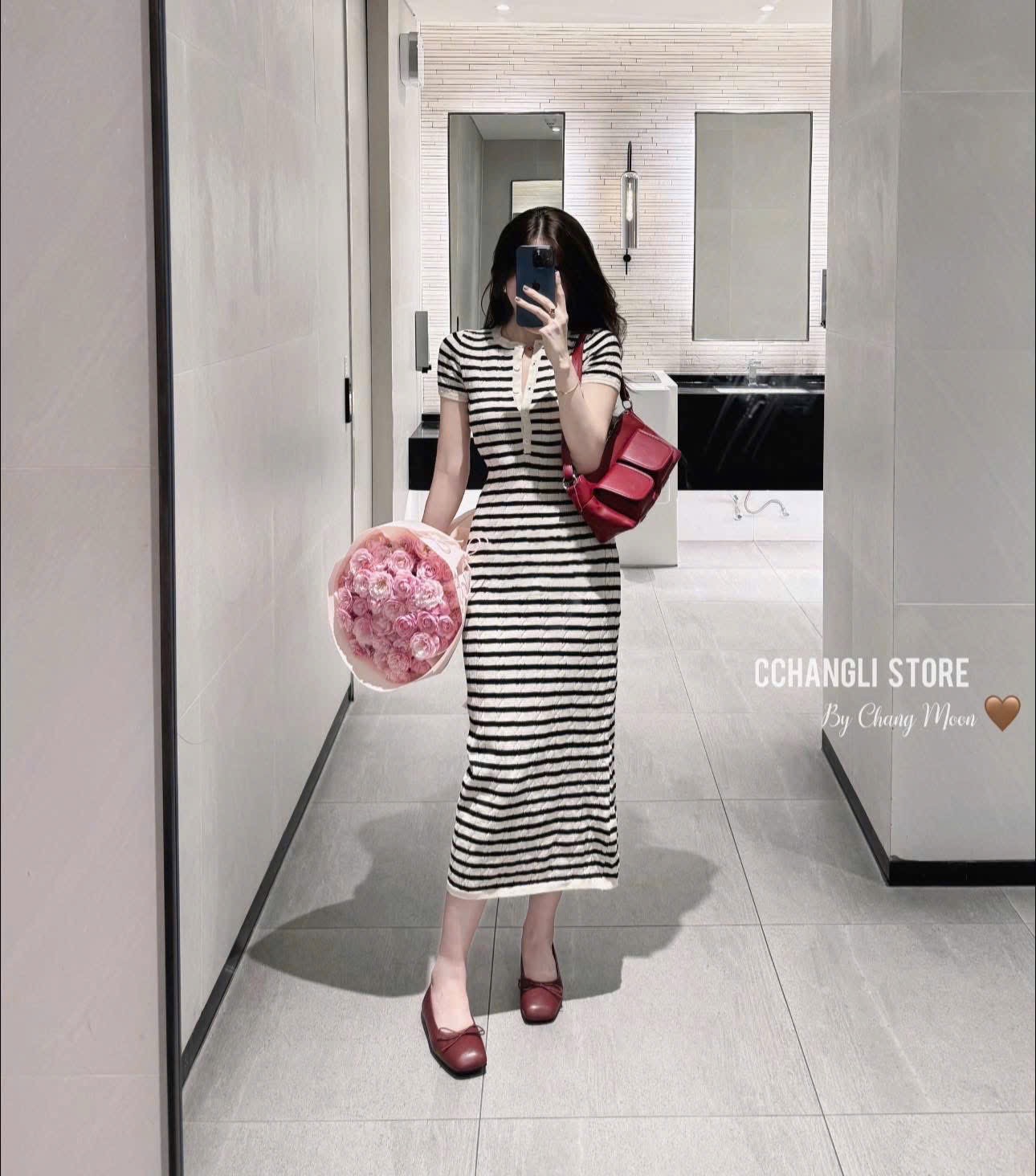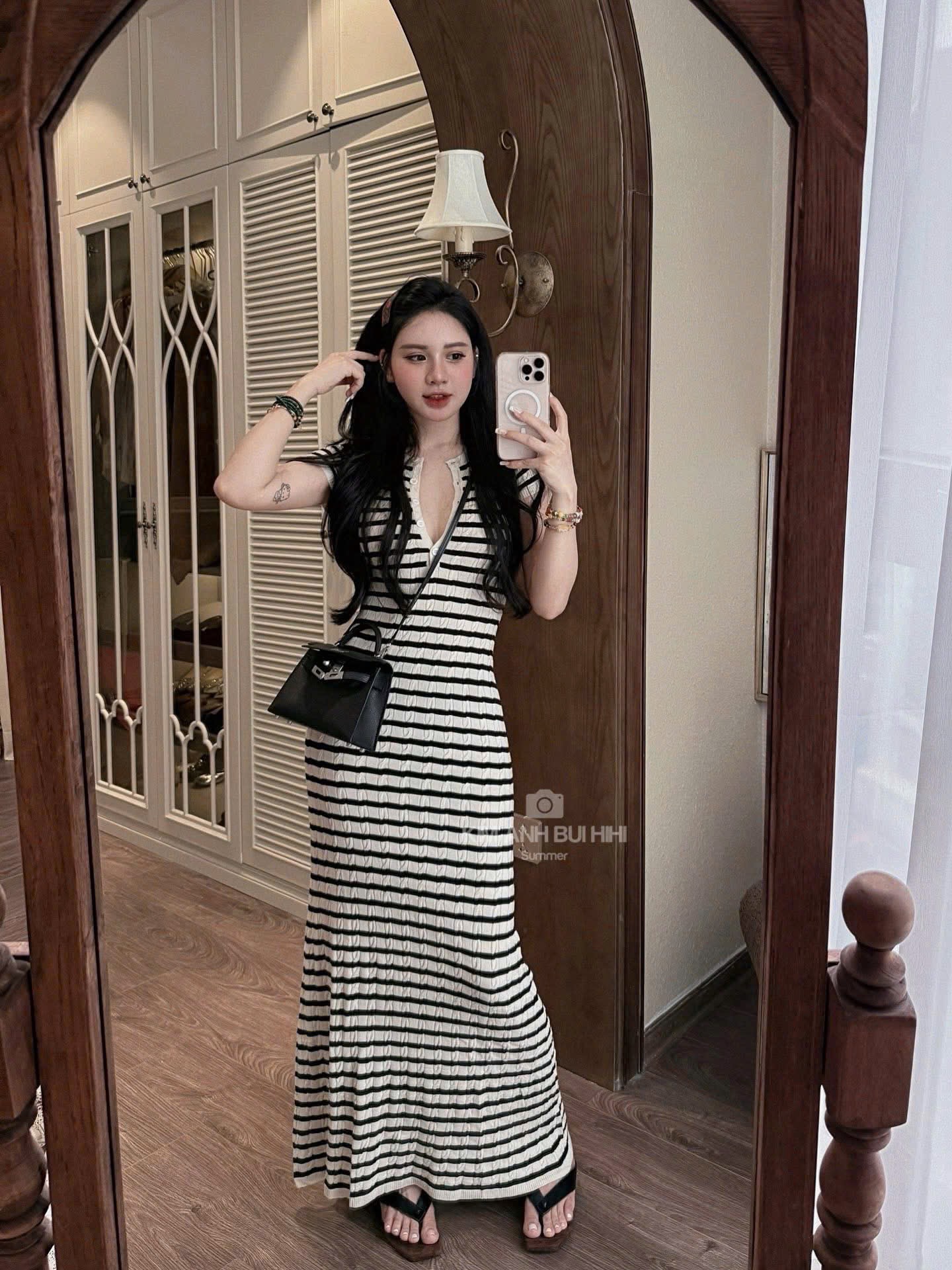 ✨Váy Body Len Dài Kẻ Sọc Ôm Dáng Tôn Eo Sang Xinh