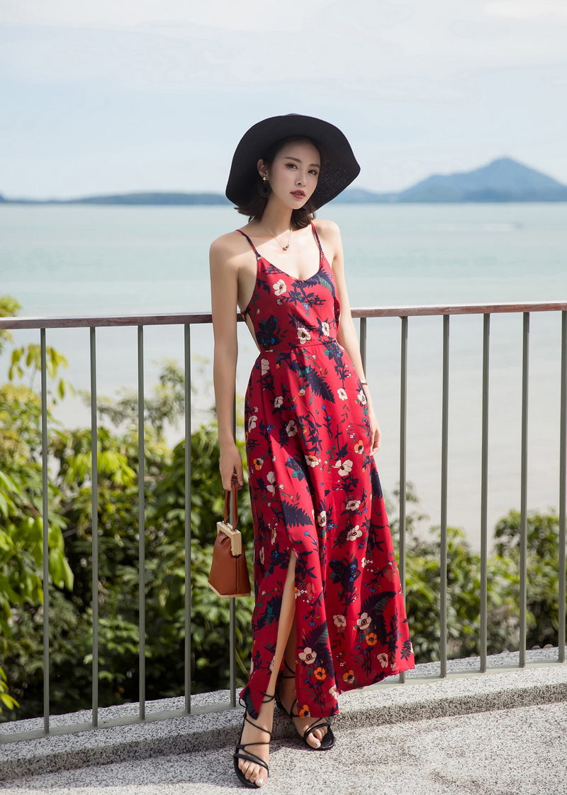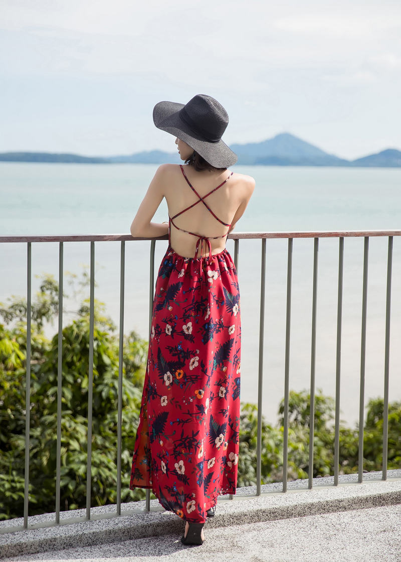 Thời trang nữ | Đầm maxi dài hở lưng đi biển