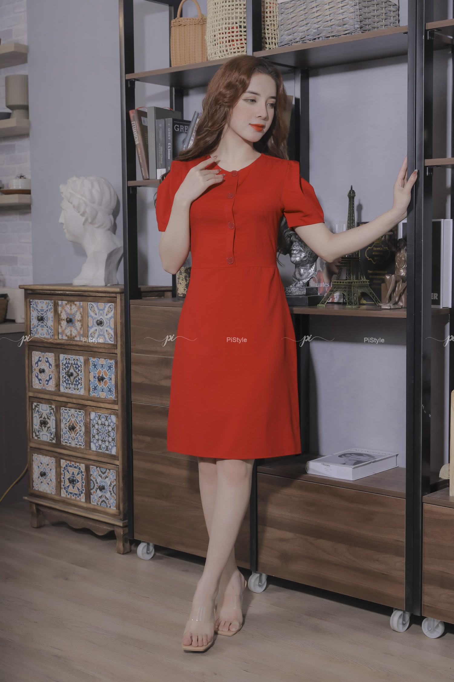 Váy Vải Trơn Cúc Trước Màu Đỏ Pi Home Of Beauty Made With Love 23V059