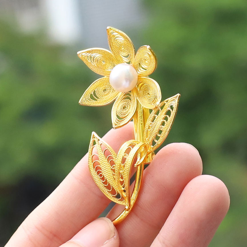 Hoa cài áo do Golden Gift Việt Nam chế tác được mạ vàng thật bằng phương pháp điện phân