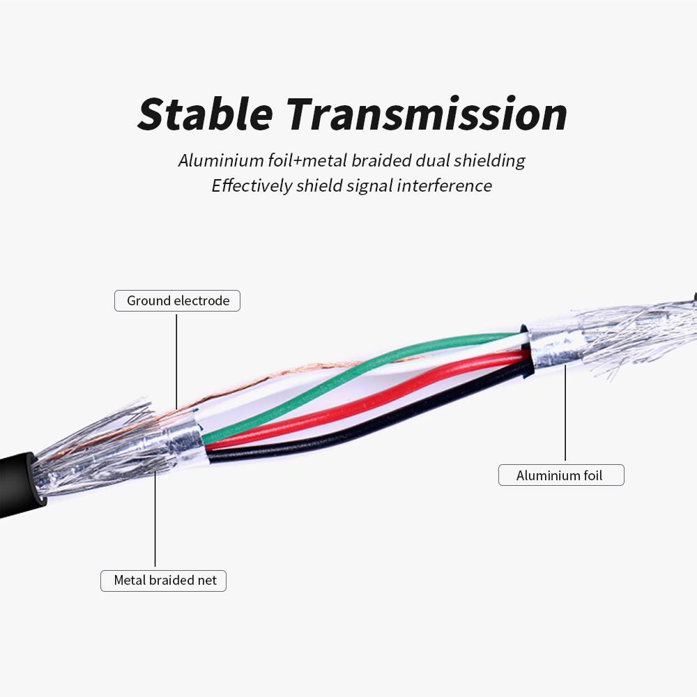 Aluminium foil and metal braided dual shielding effectively shield signalinterference and ensures stable transmission.