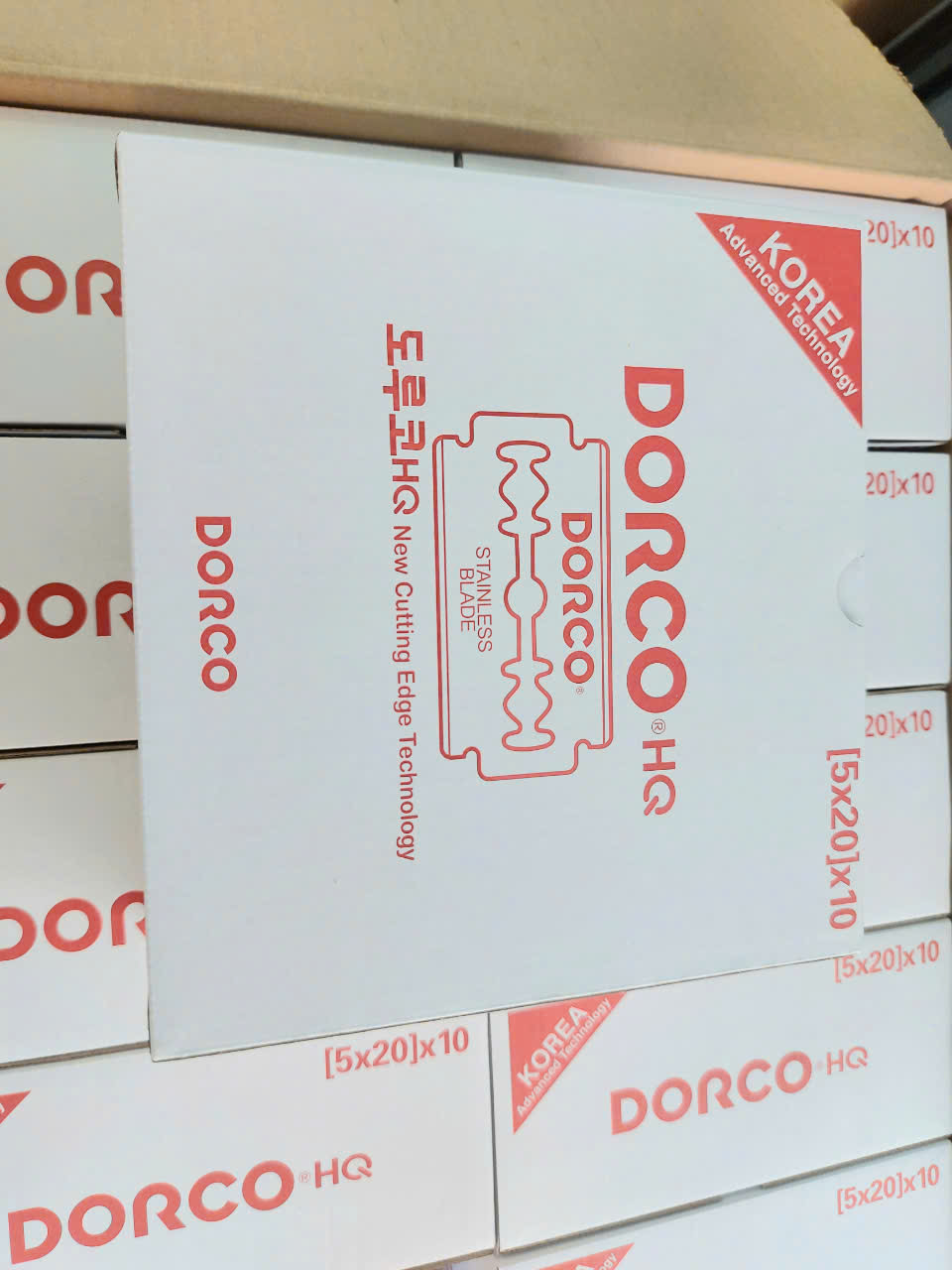 Vỉ 100 hộp lưỡi lam Dorco HQ màu đỏ ( Dao lam Dorco Đỏ) là sản phẩm lưỡi dao Dorco chính hãng Hàn Quốc Sản phẩm có độ mỏng lưỡi dao là 0.075mm giúp lưỡi