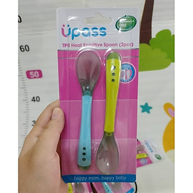 Vỉ 2 Thìa Cảm Ứng Nhiệt Thay Đổi Màu An Toàn Cho Bé Ăn Dặm UPASS UP3022W - Xuất xứ: Thái Lan - Nhập khẩu và phân phối bởi cty Genex - Thìa