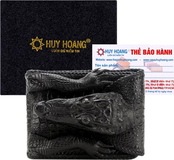 Ví/Bóp nam Huy Hoàng da bò vân cá sấu màu đen 2111