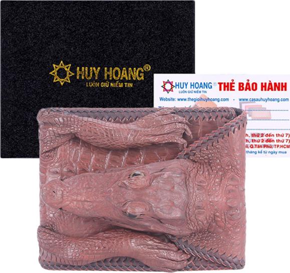 Ví/Bóp nam Huy Hoàng da bò vân cá sấu màu nâu đỏ 2148